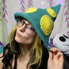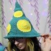Teal Mushroom Hat with Yellow Dots