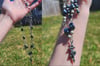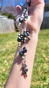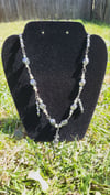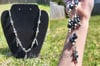 Handmade light and dark gray themed necklace with a silver rose charm!